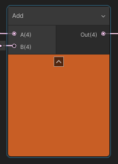 Como ves, tiene dos inputs y un output, y cada uno marca un número entre paréntesis. El número nos indica cuántos parámetros tiene la variable que entra o sale del nodo. En el caso de los colores, estos tienen cuatro variables; RGBA, definidos dentro de un Vector4.